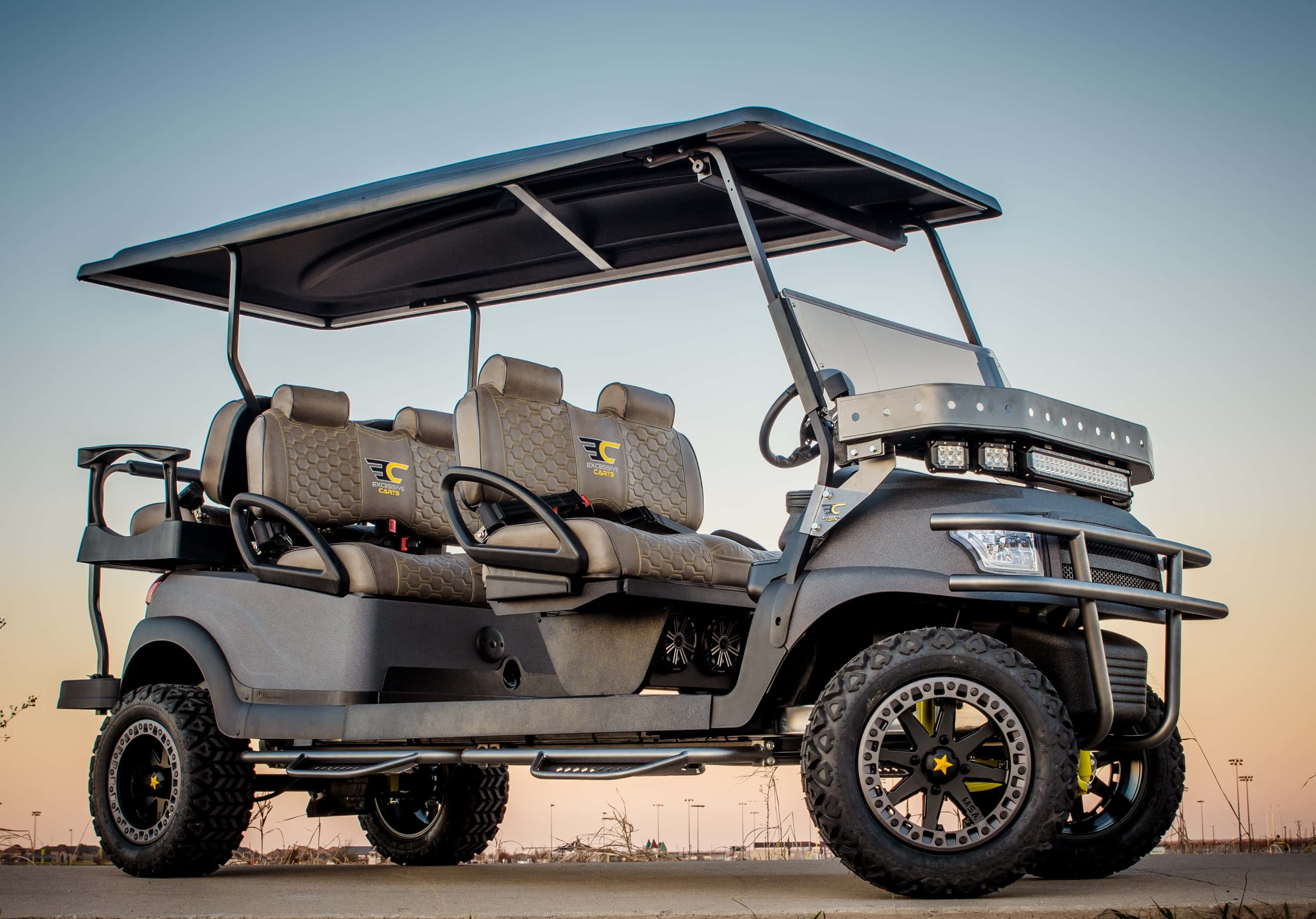 Excessive Carts proudly highlights this 100% custom BAMF Six Seater Golf Cart. All of our builds start with a customer design consultation and end with a truly Excessive Cart experience! Your customization options insure no 2 BAMF Six Seater Golf Cart builds are ever the same. Our BAMF Six Seater Golf Cart build is truly one of a kind and, of course, Excessive!