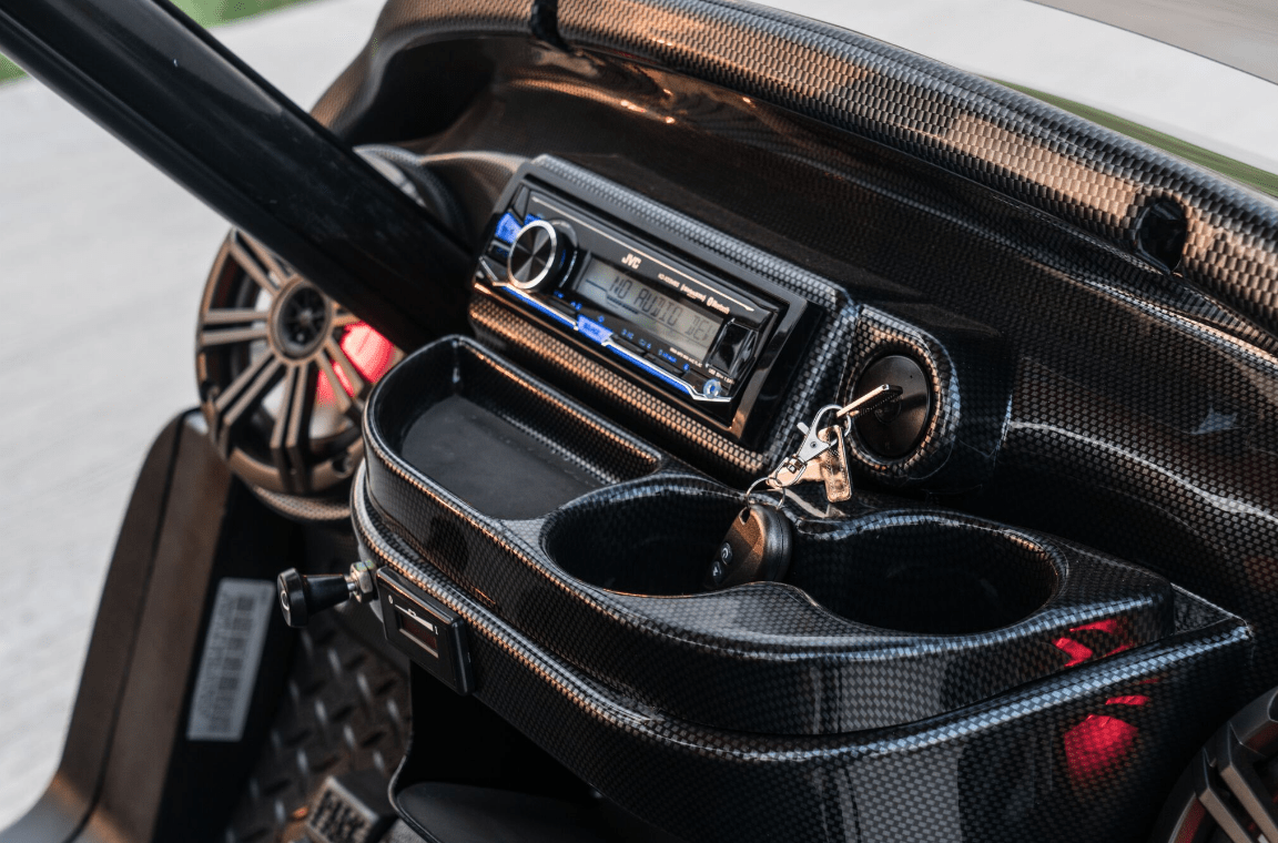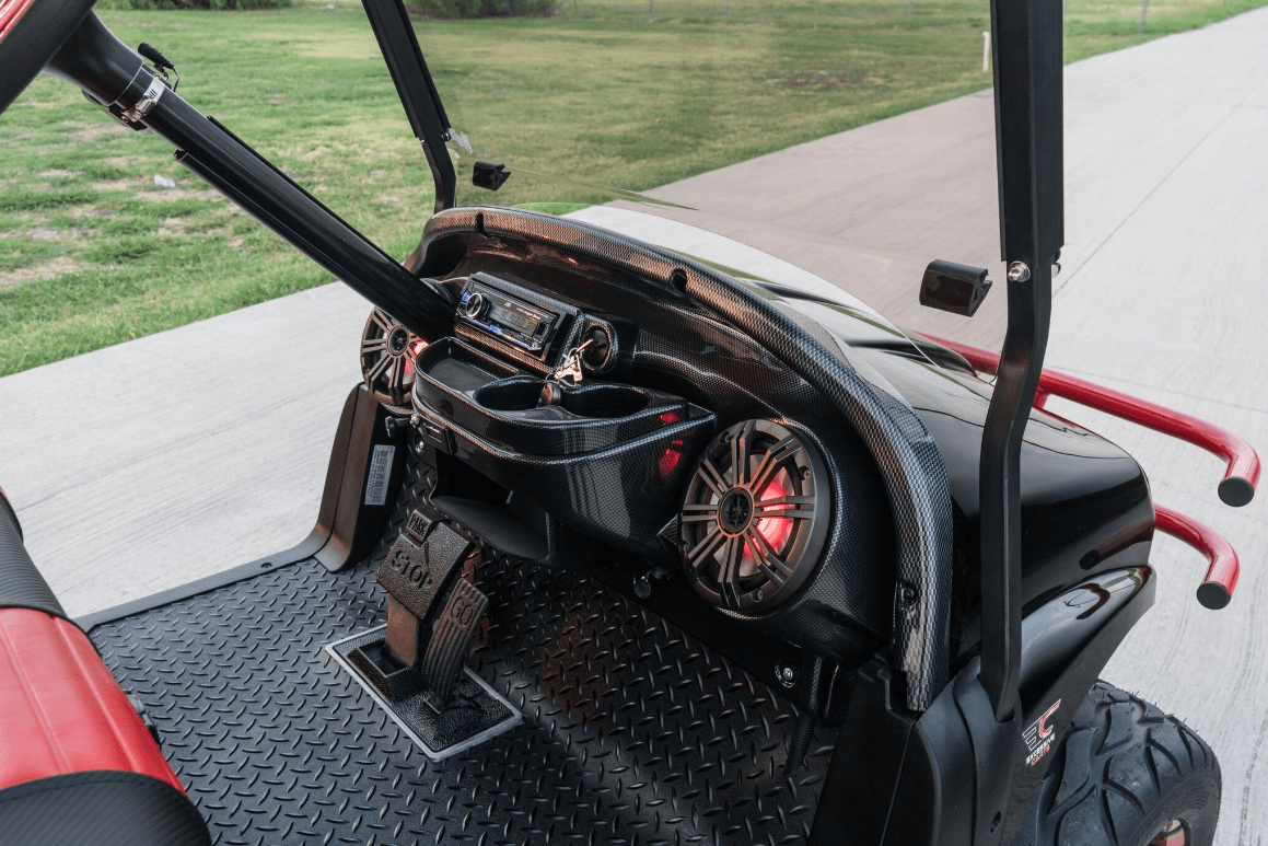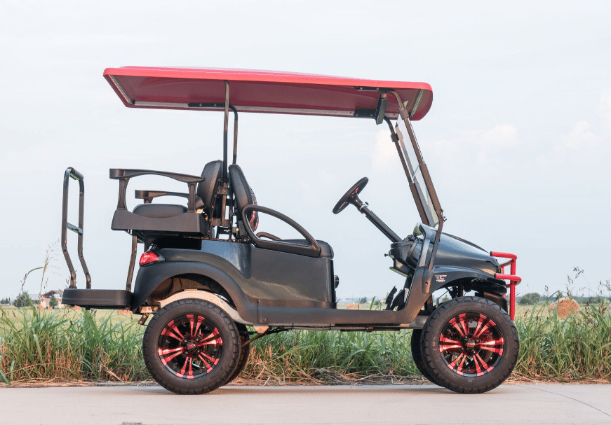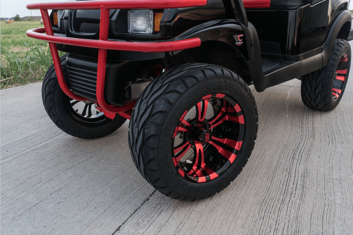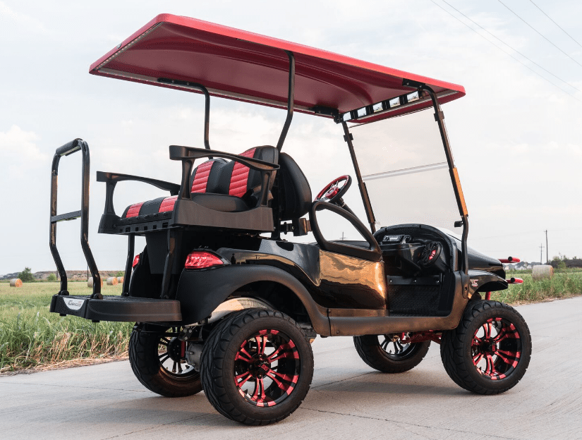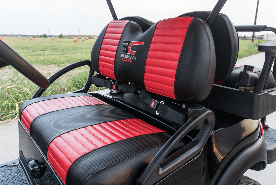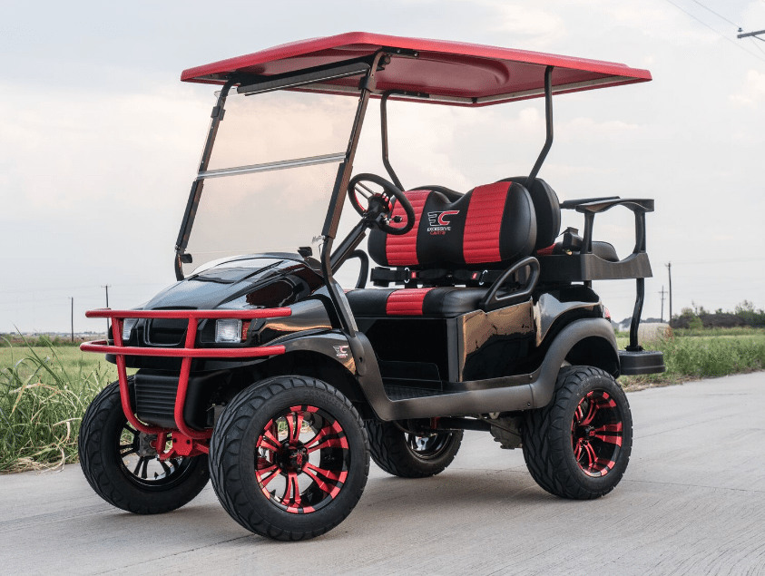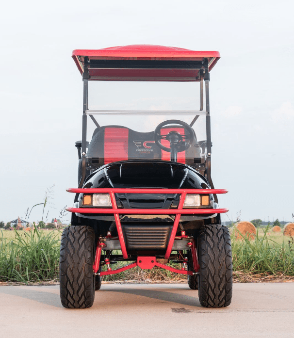 Excessive Carts proudly highlights this 100% custom Black Super Fast Red Golf Cart. All of our builds start with a customer design consultation and end with a truly Excessive Cart experience! Your customization options insure no 2 Black Super Fast Red Golf Cart builds are ever the same. Our Black Super Fast Red Golf Cart build is truly one of a kind and, of course, Excessive!