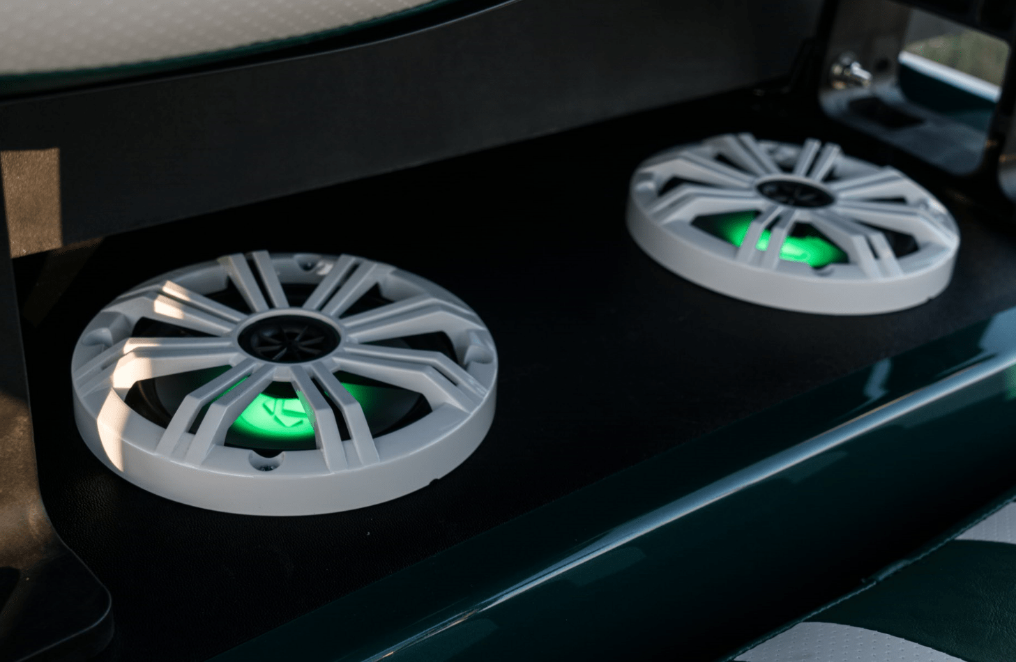 -NEW JVC BT, Pandora I-Phone / Android Compatible, MP3, AM/FM Radio System 2 NEW Kicker ( Green ) Illuminated Marine 6.5 Inch Speakers