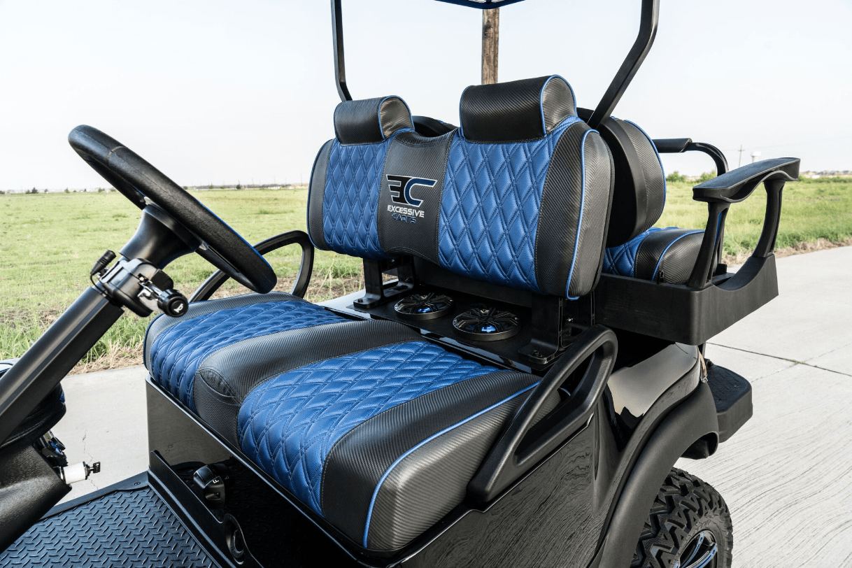 Excessive Carts proudly highlights this 100% custom Midnight Blue 2 Golf Cart. All of our builds start with a customer design consultation and end with a truly Excessive Cart experience! Your customization options insure no 2 Midnight Blue 2 Golf Cart builds are ever the same. Our Midnight Blue 2 golf cart build is truly one of a kind and, of course, Excessive!