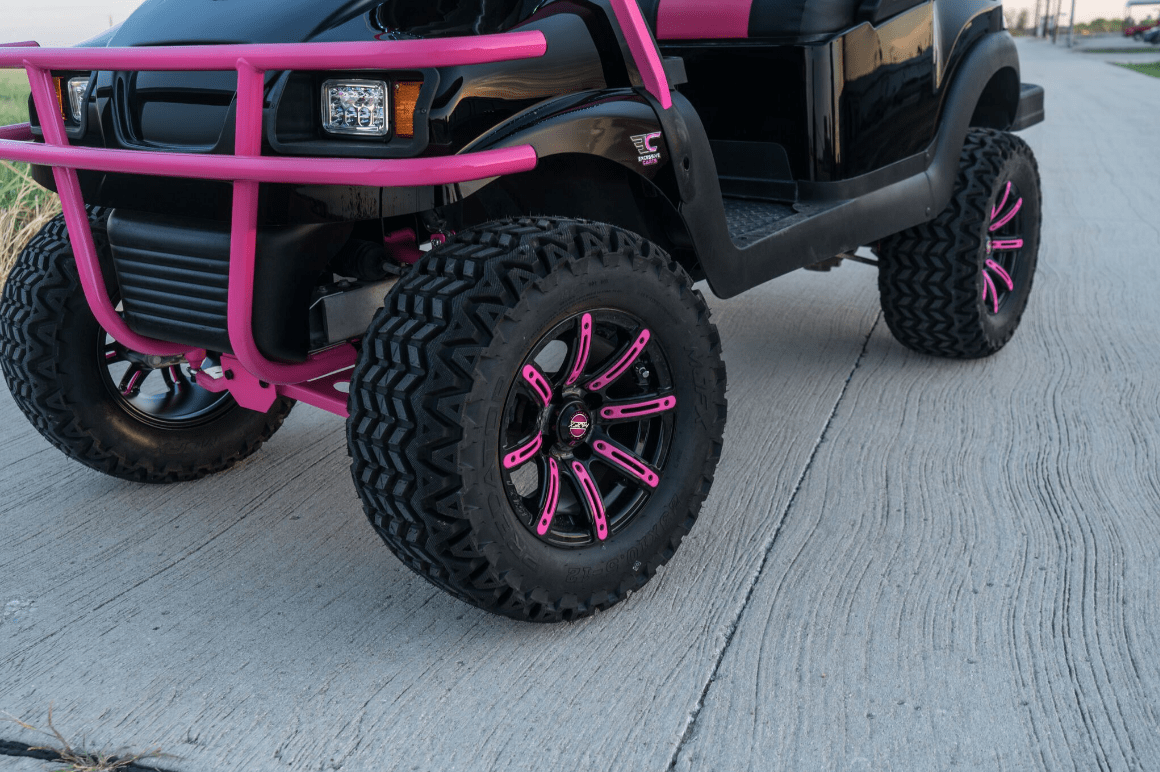 Excessive Carts proudly highlights this 100% custom Pinkalicious Golf Cart. All of our builds start with a customer design consultation and end with a truly Excessive Cart experience! Your customization options insure no 2 Pinkalicious Golf Cart builds are ever the same. Our The Pinkalicious Golf Cart build is truly one of a kind and, of course, Excessive!