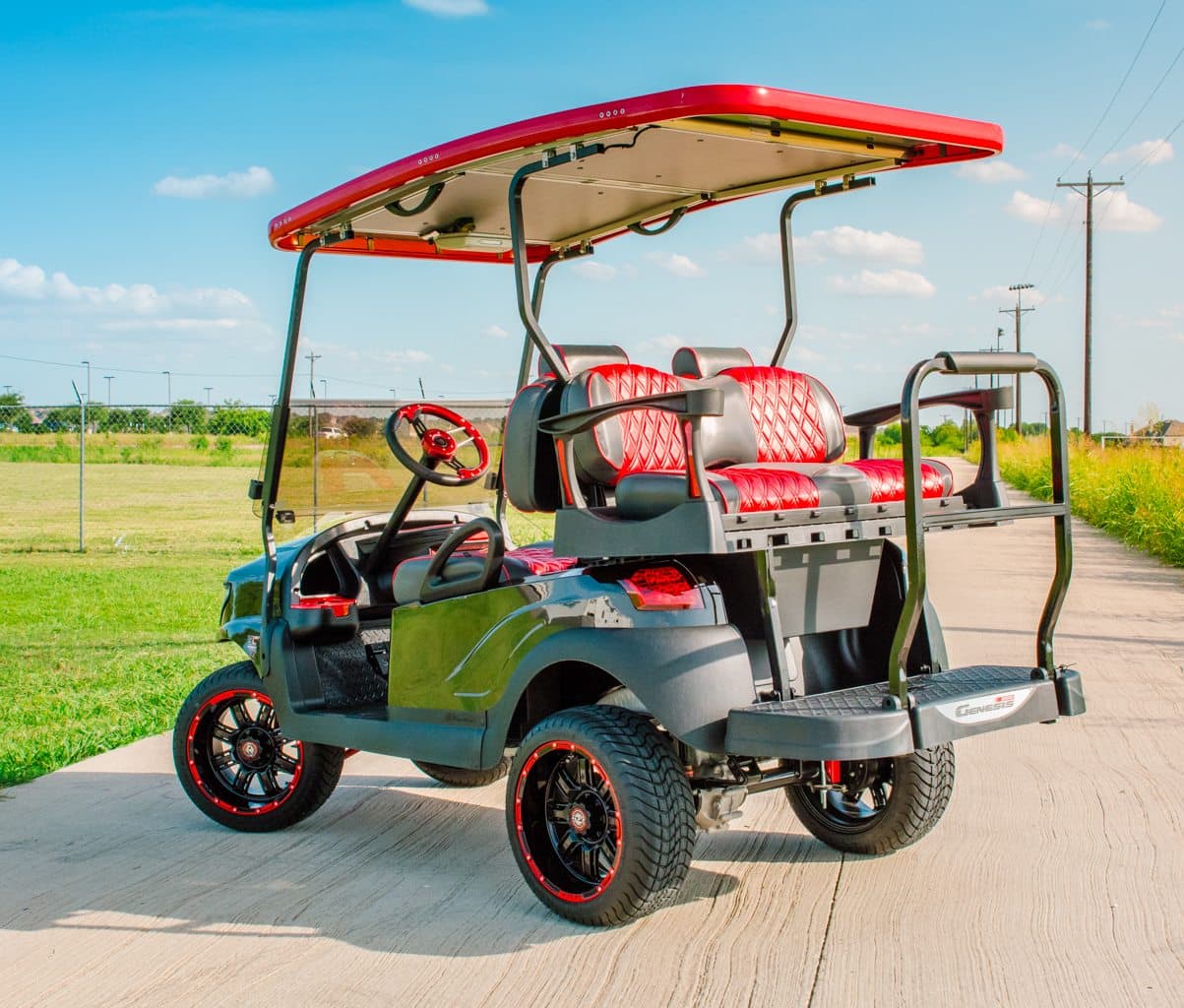 Excessive Carts proudly highlights this 100% custom Red and Black Solar Golf Cart. All of our builds start with a customer design consultation and end with a truly Excessive Cart experience! Your customization options insure no 2 Red and Black Solar Golf Cart builds are ever the same. Our Red and Black Solar Golf Cart build is truly one of a kind and, of course, Excessive!