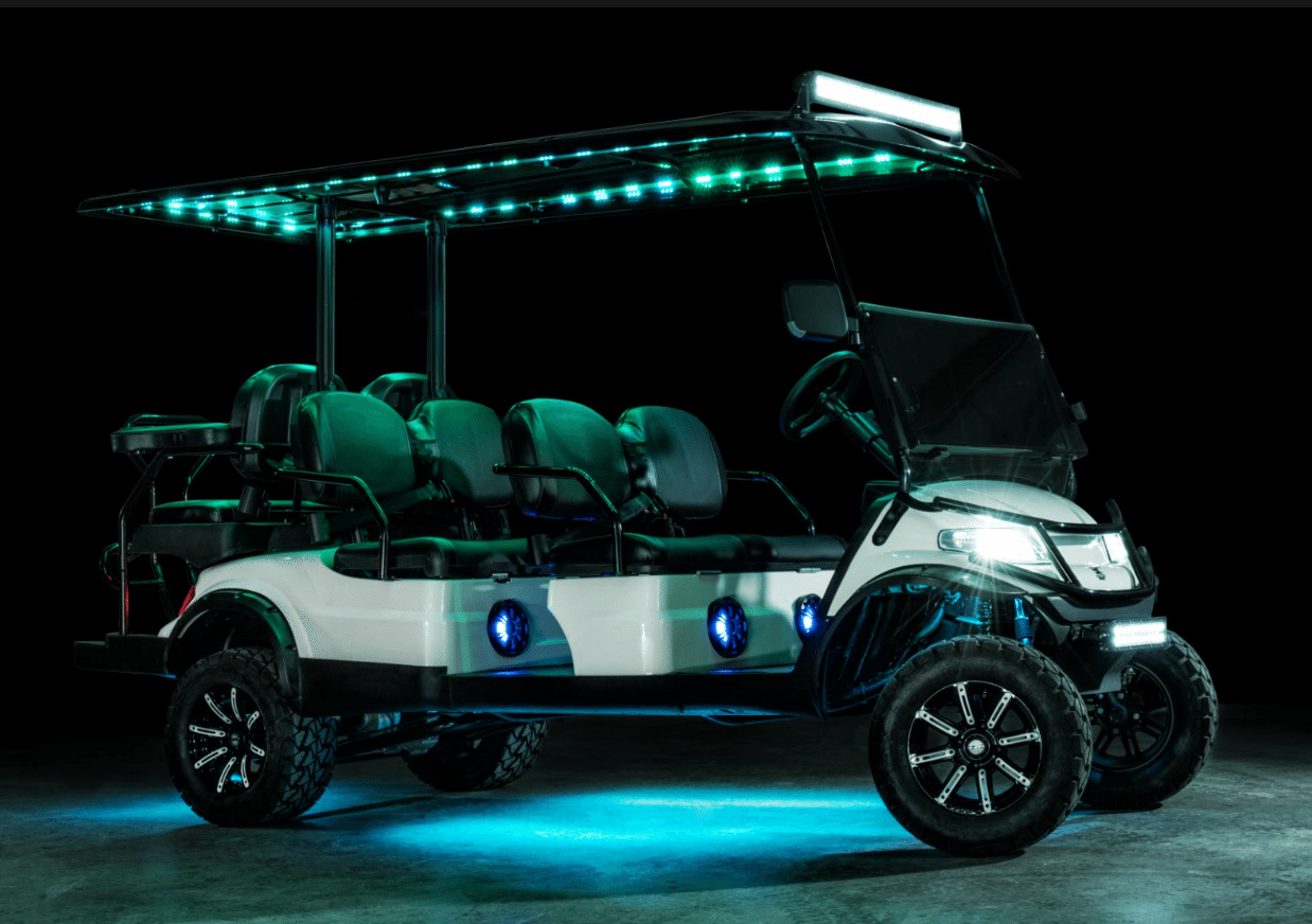 Excessive Carts proudly highlights this 100% custom White Rover 6 Seater Stretch Golf Cart. All of our builds start with a customer design consultation and end with a truly Excessive Cart experience! Your customization options insure no 2 White Rover 6 Seater Stretch Golf Cart builds are ever the same. Our White Rover 6 Seater Stretch Golf Cart build is truly one of a kind and, of course, Excessive!