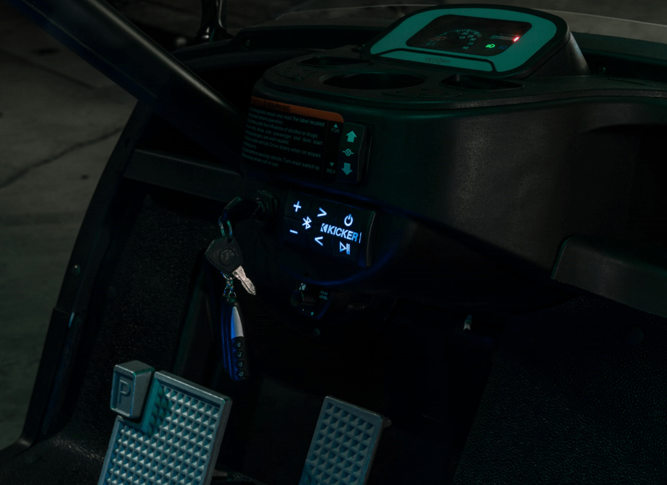 * Kicker PXIBT50.2 pushing 4 LED multi-color Kicker 6.5 speakers.
